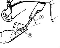 NOTE: You may use leveling gauge (B) or short ruler to level blade. Order leveling gauge from your John Deere dealer.
