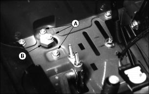 3. Turn leveling cam (B) with 1-1/8-in. socket to raise or lower rear of mower as needed.