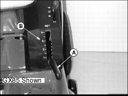 3. Pull throttle lever (B) completely rearward to SLOW (t).