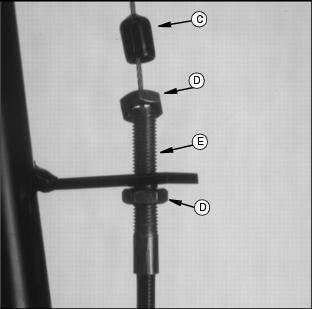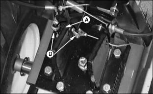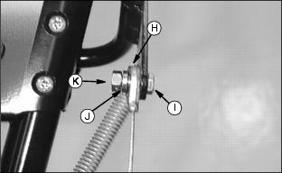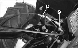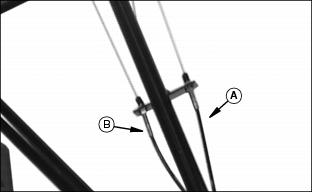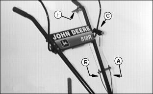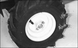 AssemblyIdentify PartsBag of PartsInstall Handlebar AssemblyNOTE: Remove all banding from the tiller assembly and remove protective wrap from the handlebar assembly before assembling. Remove the tiller from the shipping pallet before beginning assembly. 1. Cut tie strap (A) holding clutch cables (B) to the handlebar bracket. 2. Position handlebar legs on handlebar bracket (C) located at top of gearcase. 3. Three holes are available at the bottom of the handlebar for height adjustment. Select a safe, comfortable height. Align holes and install hardware. Install 3/8 x 1 inch bolt (E) from outside and install 3/8 washer and locknut (D) to bolt from inside. Connect Drive Cablesˇ FORWARD clutch cable (A) which is the shorter cable installed to the right side of the sheave housing. ˇ REVERSE clutch cable (B) which is the longer cable installed to the left side of the sheave housing. 2. Connect cables to handlebar bracket: ˇ FORWARD clutch cable (A) to outside of bracket. (will go to "F" Top Levers.) ˇ REVERSE clutch cable (B) to inside of bracket. (will go to "R" Bottom Lever.) ˇ Position cables in bracket about mid-way in threads (E). ˇ Secure cables to bracket by tightening nuts (D) against bracket. ˇ Put rubber boot (C) down over cable end. This will help to keep moisture out of cable. ˇ FORWARD clutch cable (A) to "F" Top Levers (G). ˇ REVERSE clutch cable (B) to "R" Bottom Lever (F). ˇ When attaching cable ends use cap screws (1/4 x 3/4 in.) (I), cable spacers (J) and lock nuts (1/4 in.) (K). ˇ Tighten lock nuts, cable must be able to move freely around spacers. 4. Install tie strap to secure the cables to the handlebar just above the welded bracket on the handlebar. 5. Check for proper adjustments in the Main Clutch levers: ˇ "F" Top Levers - see Adjusting "Forward" Drive Belt Tension in the Service section. ˇ "R" Bottom Lever - see Adjusting "Reverse" Drive Belt Tension in the Service section. Add Engine OilNOTE: See Engine Oil in the Service Section for proper type of oil. 1. Remove oil fill plug (A). (Fill plugs are located on either side of the engine.) NOTE: Crankcase capacity is approximately 0.56 L (19 oz.) 2. Slowly add oil into oil plug hole until crankcase is "FULL" (full oil level (B) indicated in illustration). Remind customer to change oil in engine crankcase after first 2 hours of operation. Check Tire PressureNOTE: Tires are overinflated at the factory to seal the bead. 1. Inflate tires to 96 kPa (14 psi). Check Gearbox Oil Level