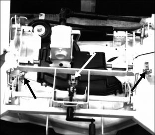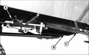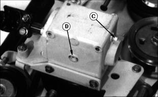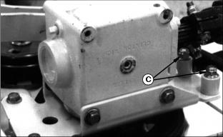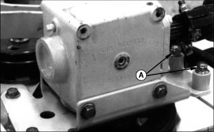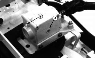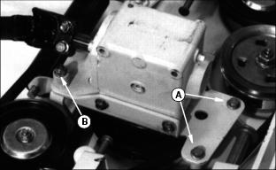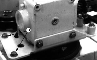 Service MowerAvoid Injury From Contacting BladesGreaseUse grease based on the expected air temperature range during the service interval. The following greases are preferred: ˇ John Deere MOLY HIGH TEMPERATURE EP GREASE. ˇ John Deere HIGH TEMPERATURE EP GREASE. Other greases may be used are: ˇ SAE Multipurpose EP Grease with a maximum 5 percent molybdenum disulfide. ˇ Greases meeting Military Specification MIL-G-10924F may be used as arctic grease. Replacing PTO Belts1. Loosen nut (A) to loosen the idler bracket (B) and sheave. 2. Remove the nut, flat washer, and tooth washer (C) from the bottom, front of the bracket. 3. Remove the bolt and flat washer (D) from the bottom, rear of the bracket. 4. Remove the bracket and both belts. 5. Install the new belts, bracket, and hardware. 6. Tighten nut (A) until the belt deflects 19mm (3/4-in.) when you push the mid point of the belt on its longest side. Adjusting PTO ClutchTo adjust the PTO clutch, see the Service-Engine section. Gearbox OilChecking The Mower Gearbox Oil Level1. Stop the engine. Wait until the gearbox is cool. 2. Remove the check plug (A) from either side of the gearbox. 3. Oil should drain from the plug hole. 4. If not, remove the fill plug (B). 5. Pour or squirt oil through the fill plug hole until the oil runs out of the check plug hole. Changing The Mower Gearbox Oil1. STOP the engine. Wait until the gearbox is cool. 2. Lift the seat to the second position. 3. Remove the driveline coupler from the vehicle gearbox shaft. 4. Remove the three mower belt shields. Use a spring puller to remove the end of the mower belt tension spring from its bracket. 5. Remove the two cap screws (A) from in front of the gearbox. 6. Remove the two bolts (B) and spacers from the rear of the gearbox. 7. Remove the gearbox and driveline from the belt and the mower. 8. Remove the fill plug (C) from the gearbox. 9. Turn the gearbox upside down to drain it. 10. After the oil has drained, turn the gearbox right side up. 11. Remove a check plug (D) from either side of the gearbox. 12. Pour or squirt oil through the fill plug hole until the oil runs out of the check plug hole. 13. Install the two plugs in the gearbox. 14. Install the gearbox on the mower. Install the belt on the gearbox sheave as you install the gearbox. 15. Tighten the cap screws and bolts to 70 Nˇm (50 lb-ft). 16. Connect the coupler to the vehicle gearbox shaft. 17. Use a spring puller to install the end of the spring in its bracket. Checking The PTO Gearbox Oil Level2. Lift the seat to the second position. 3. Remove the check plug (A). Oil should flow from the plug hole. 4. If not squirt oil through the check plug hole, OR remove the fill plug (B) and squirt oil through the fill plug hole. Lubricating The Caster Wheel Bearings And SpindlesLubricate two points on each front wheel assembly. Use John Deere Multipurpose Grease or equivalent. Lubricating The Mower SpindlesUse John Deere Multipurpose Grease or equivalent. Lubricating The Mower Rear Wheel BearingUse John Deere Multipurpose Grease or equivalent. Lubricating The Driveline U-joints And SplineUse John Deere Multipurpose Grease or equivalent. Lubricating The Crank BushingUse John Deere Multipurpose Grease or equivalent. Removing And Installing The Belt Shields1. To remove the shields, open the three latches shown. 2. Remove the center shield first, then the other two shields. 3. Install the outer shields first, then the center shield. Replacing The Rollers1. Turn the crank to raise the mower as high as it will go. 3. Pull the shaft out and remove the roller. 4. Install the new roller on the shaft. 5. Install and tighten the lock nut. Removing The Mower Belt1. Remove the three belt shields. 2. Lower the mower all the way by turning the crank on the front of the mower. 3. Use a spring puller to remove the end of the spring (A) from the mower bracket. 4. Loosen the two cap screws (B) in front of the gearbox several turns. 5. Remove the two bolts (C) and the two spacers from the rear of the gearbox. 6. Use a bar to lift and hold up the rear of the gearbox. 7. Remove the belt from under the gearbox. Lower the gearbox. 8. Remove the belt from the other sheaves and discard it. Installing Mower Belt1. Use a bar to lift and hold up the rear of the gearbox. 2. Install the new belt on the sheave that is under the gearbox. 4. Use the picture at the right to help you install the belt on the other sheaves. Do not twist the belt. 5. Install the two bolts and spacers (A) at the rear of the gearbox. 6. Tighten the two bolts to 70 Nˇm (50 lb-ft). 7. Tighten the two cap screws (B) in front of the gearbox several turns. 8. Use a spring puller to install the end of the spring (C) in the bracket. 9. Install the three belt shields. Checking The Blades1. Put blocks in front of the mower. 3. Pull up the Mower Lift Lever to RAISE the mower as high as it will go. 4. Hold the Lift Lever up and drive the Front Mower SLOWLY forward until you can lower the mower onto the blocks. 5. RELEASE the Lift Lever to lower the mower onto the blocks. 6. STOP the engine. LOCK the park brake. 7. Check the blades for damage and sharpness. 9. Sharpen a dull blade. See Sharpening The Blades next in this section. 10. To remove a blade, turn the bolt (A) counterclockwise. Sharpening Blades1. Sharpen blades with grinder, hand file or electric blade sharpener. 2. Keep original bevel (A) when you grind. Blade should have 0.40 mm (1/64 in.) cutting edge (B). 3. Balance the blade. See BALANCING AND INSTALLING THE BLADES next in this section. Balancing And Installing The Bladesˇ Put the blade on a nail in a vise or wall. The heavy end of the blade will drop. Grind the bevel of the heavy end. Do not change the bevel. 2. Fasten blades with washers and bolts. The cup-side of the washer must be against the blade. Tighten bolts to 68-75 Nˇm (45-55 lb-ft). |