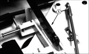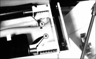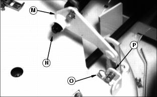 7. Lay each bracket off to the side as shown. 8. Push each arm (L) down into the lift frame. 9. Install the bracket (M) on each side on the push arm shaft (N). 10. Install the drilled pin (O) and the ring (P) on each side. 11. Each push arm (Q) should be down into the lift frame. 12. Turn the crank to line up the front frame holes with the front push arm holes. 13. Turn the front spring pin (R) on each side to release its rod from the bracket slot. The pin should snap into the push arm hole. 14. Turn the crank counterclockwise to line up the rear frame holes with the rear push arm holes. 15. Turn the rear spring pin (S) on each side to release its rod from the bracket slot. The pin should snap into the push arm hole. 16. Adjust the cutting height and the rear mower wheel. See the Operating Mower section. |