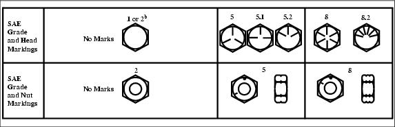Unified Inch Bolt and Cap Screw Torque ValuesDO NOT use these values if a different torque value or tightening procedure is given for a specific application. Torque values listed are for general use only and include a 10% variance. Check tightness of fasteners periodically. DO NOT use air powered wrenches. Shear bolts are designed to fail under predetermined loads. Always replace shear bolts with identical grade. Fasteners should be replaced with the same grade. Make sure fasteners threads are clean and that you properly start thread engagement. This will prevent them from failing when tightening. Tighten toothed or serrated-type lock nuts to the full torque value. |