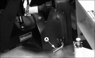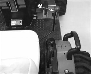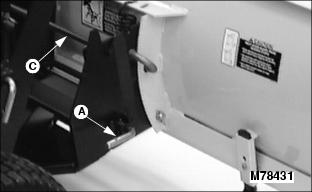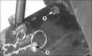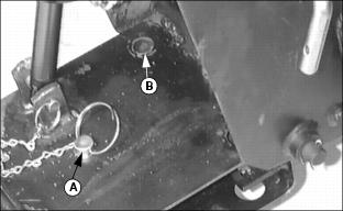 Your tractor should be equipped with 2 Tire weights for ballast. (See your John Deere dealer) Tire InflationParking Tractor47-Inch Snowblower1. Park front of tractor close to rear of attachment. 6. Before you leave the operator's seat, wait for the engine and all moving parts to stop. NOTE: Do not angle snow blower. Driveline damage will occur. 7. MAKE SURE lock-out pin assembly (A) is in the front hole of the hitch. Aligning Snowblower with Front Hitch