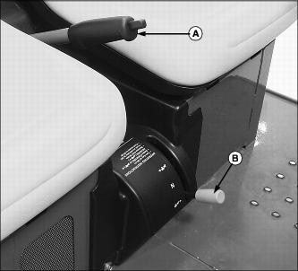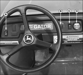 ControlsDash ControlsA - Cargo Box Dump Switch (Option) D - Charge Meter / Hour Meter (Option) Foot/Platform ControlsMiscellaneous ControlsPicture Note: Raise operator seat to locate service/drive switch. |