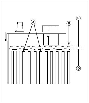 · MAXIMUM electrolyte fill level (C) is 3 mm