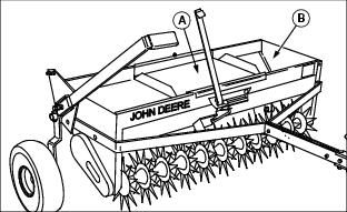 Aerating tines must be in the lowered position in order for the aerator-spreader to operate. Agitator is driven off of the aerator tines.