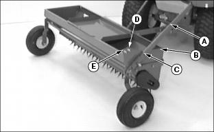 · TRANSPORT (C) - Use front lock pin to raise tines so unit can be towed without tines contacting the ground.