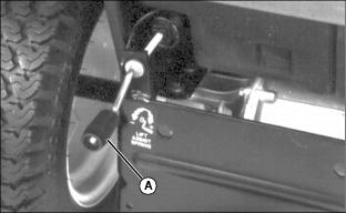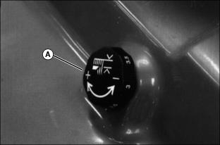 1. Make sure yellow indicator (A) is aligned with proper mark for attachment installed. If not, adjust lift assist spring so indicator is aligned with correct mark.