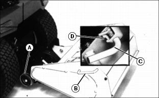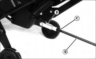 • To increase tilling depth, turn lift rod (D) out of clevis (C).
