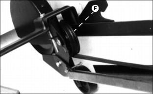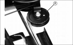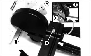 3. Turn bolt (D) so idler (E) moves up in the slot.