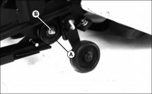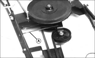 2. Loosen nut (A). Move belt guide (B) away from belt.