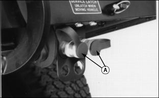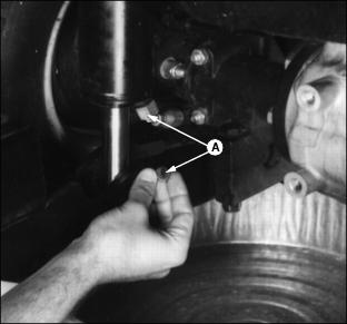 If Front Mower is equipped with plastic rear bumper, install rear weight kit, BM17983, with six 16.78 kg (37 lb.) weights, BM17967. Follow instructions provided with kit. If Front Mower is equipped with cast iron rear bumper, install rear weight kit, BM17983, with four 16.78 kg (37 lb.) weights, BM17967. Follow instructions provided with kit. For F1145 six weights are required only. Tire chains and drive wheel weights may also be used, if needed. (See your John Deere dealer.) Install liquid weight in front tires, if needed. (See your Front Mower operator's manual.) Install Lift Cylinder Orifices (F900 Series)NOTE: If Front Mower is equipped with weight transfer valve, orifices are not required. Orifices are standard on F1145's. 1. Stop engine and push hydraulic lift control lever forward to float position. 2. Pull both lift cylinder arms all the way down. 3. Clean area around lift cylinder hydraulic fitting. 4. Disconnect hose from lift cylinder. Put orifice (A) on sealing surface of fitting. Connect and tighten fitting. 5. Follow Steps 3 and 4 for other cylinder. 6. Start engine. Operate lift cylinders to check for leaks. Tighten fittings as necessary. |