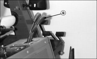Preparing VehicleInstall Auxiliary Hydraulic KitNOTE: Your Front Mower MUST be equipped with the Auxiliary Hydraulic Kit before installing the snowblower. See your John Deere dealer to order. Follow instructions provided with kit BM17714 to install hydraulic ports (A) and second hydraulic lever (B) to the Front Mower. Install Weights and Chains