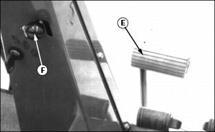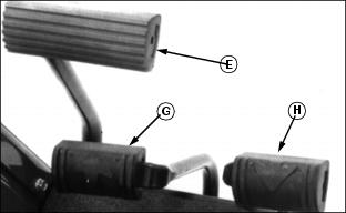 ˇ On F1145: Pull up on PTO knob (B). ˇ On F900 Series: Push front of PTO switch (C) down. 6. Move throttle lever to FAST position (D) for best engine and snowblower performance. NOTE: If the unit should start to vibrate abnormally, stop the engine and check immediately for the cause. Vibration is generally a warning of trouble. 7. Push and hold service/park pedal (E) down. 8. Move knob (F) to the top of the slot and release pedal. 9. To travel FORWARD: Push pedal (G). To travel in REVERSE: Push pedal (H). For emergency STOP: Push pedal (E). PTO will also stop. NOTE: Run machine a few minutes after blowing snow to prevent freeze-up of the collector/impeller. Stopping SnowblowerNOTE: If engine and snowblower are running, engine and snowblower will stop when you get off operator's seat. ˇ On F1145: Push PTO knob (A) down. ˇ On the F900 series: Push rear of PTO switch (B) down or depress service park brake to disengage PTO. 4. Lower snowblower to ground. 5. Lock park brake and remove key. 6. Wait for auger and blower to stop. Using Differential Lock