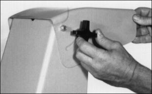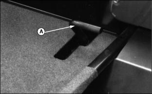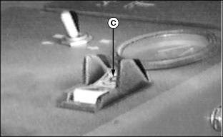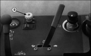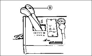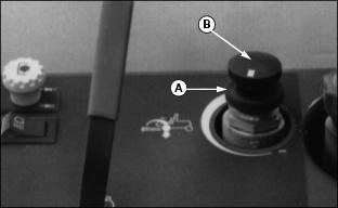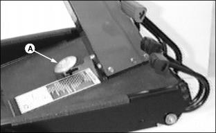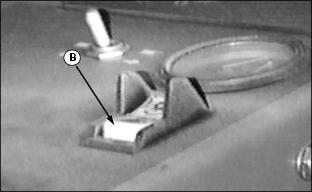 LOCK differential pedal (A) for better traction. Front wheels stay LOCKED when you hold pedal down, or when traction is unequal. Using Weight Transfer ValveNOTE: Optional on the F911 and F1145. Standard on the F925 and F935. 1. Run engine at half throttle. 2. Push inner hydraulic lever forward to float position. 3. Turn lock knob (A) counterclockwise to unlock adjusting knob (B). 4. Turn knob (B) counterclockwise slowly until snowblower just begins to leave the ground. This will transfer approximately two-thirds of snowblower weight to Front Mower drive wheels. 5. Turn lock knob clockwise to lock adjusting knob. 6. Operate snowblower over uneven ground with hydraulic lever in float position. Snowblower should follow contours of ground. 7. Adjust weight transfer valve if snowblower does not follow contours of ground. 8. Also use this valve to adjust snowblower rate of drop when you lower snowblower. Transporting Front Mower and Snowblower SafelyDisengage power to collector/impeller when the snowblower is transported or not in use. Lower snowblower to trailer deck. Lock park brake. (See your Front Mower operator's manual for more information.) |
