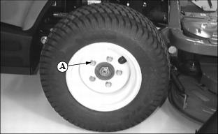 Service Steering and BrakesRemove and Install Front WheelsRemoving:1. Park front mower on a level surface. 2. Stop engine and engage park brake. 3. Slightly loosen five wheel bolts (A). 4. To remove the front wheel on the RIGHT side of the Front Mower: ˇ Lift mower with jack in position (B). Make sure jack is centered under portion of engine base supporting the fuel tank. 5. To remove the front wheel on the LEFT side of the Front Mower: ˇ Lift mower with jack in position (C). Make sure jack is centered under portion of engine base supporting the battery. Installing:ˇ Tighten wheel bolts in numbered sequence shown for safe wheel installation. Tighten alternately until recommended torque value is reached. ˇ Tighten bolts to 100 Nˇm (75 lb-ft.). Remove and Install Rear Steering WheelRemoving1. Stop engine and engage park brake. Rear steering wheel(s) should be pointing straight ahead. 2. Park mower on a level surface. 3. Lift rear of front mower with a safe lifting device. Picture Note: Photo shows front mower equipped with the single rear steering wheel option. 4. Remove hex nut (A) and wheel bolt (B). 5. Remove wheel from assembly yoke. Installing2. Install steel spacer, wheel bolt and hex nut. GreaseUse grease based on the expected air temperature range during the service interval. The following greases are preferred: ˇ John Deere Moly High Temperature EP Grease. ˇ John Deere High Temperature EP Grease. Other greases may be used are: ˇ SAE Multipurpose EP Grease with 3 to 5 percent molybdenum disulfide. ˇ Greases meeting Military Specification MIL-G-10924C may be used as arctic grease. Lubricating Rear Steering Wheel Bearing and SpindleLubricate steering wheel bearing(s) (A) and spindle(s) (B). (See Grease in this section for the proper application.) Picture Note: Top photo shows front mower equipped with single rear steering wheel option. Picture Note: Bottom photo shows front mower equipped with wide stance dual steering wheel option. Lubricate Neutral Detent Plate Slots