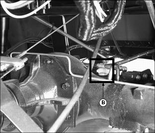 5. Unscrew dipstick (B) and remove it from the differential housing.