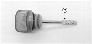 9. Remove dipstick. Oil level should be at level (C) on the dipstick.
