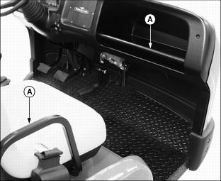 Hand Holds (A) are provided for operator and passenger balance when driving over rough terrain. Use dash bar and side rails on seats for stability.