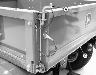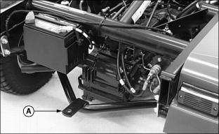 2. Pull and hold back lift cylinder lever (A) to raise cargo box.