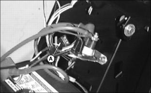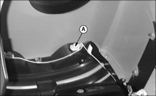 ˇ Wait until the battery has warmed to room temperature. Do not charge a frozen battery. Turn OFF and unplug the charger before you connect cables to the battery or disconnect cables from the battery. If the battery becomes warm to touch during charging: NOTE: Your charger may have an AUTOMATIC STOP to prevent charging the battery: ˇ Stop charging the battery until it cools. ˇ When the battery is fully charged OR ˇ When the battery is not in condition to take a charge. 1. Remove battery from mower. (See Removing and Installing Battery in this section.) 2. Connect positive (+) charger cable to positive (+) battery terminal. 3. Connect negative (-) charger cable to negative (-) battery terminal. 5. Charge battery using a 12 Volt battery charger at a rate of 6-10 amperes for a minimum of 1 hour and no more than 2 hours. 6. Unplug charger cord. Remove charger cables. 7. Install battery. (See Removing and Installing Battery in this section.) Using Booster Battery1. Connect positive (+) booster cable to booster battery positive (+) post (D). 2. Connect the other end of positive (+) booster cable to vehicle battery positive (+) post (A). 3. Connect negative (-) booster cable to booster battery negative (-) post (C). 4. Connect the other end of negative (-) booster cable (B) to engine ground away from battery. Replacing Fuse2. Pull defective fuse (A) out of socket. 3. Check metal clip in fuse window and discard fuse if clip is broken. Replacing Headlight Bulb2. Push in and turn bulb socket (A) 1/4 turn counterclockwise to remove. 3. Replace defective bulb(s) with a new bulb. 4. Insert bulb socket into housing, push in and turn 1/4 turn clockwise to install. Replacing Battery Discharge and Oil Pressure Indicator Light BulbsNOTE: If more than one bulb is defective, replace only one bulb at a time. Make sure light socket is installed in correct holder. 2. Turn indicator bulb socket (A) 1/8 turn counterclockwise to remove it. 4. Push new bulb into socket and install socket into holder. |