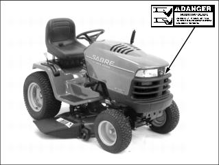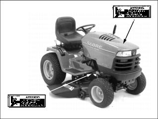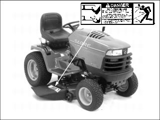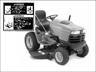 IntroductionProduct IdentificationSafetyUnderstanding The Machine Safety Labels DANGER: ROTATING BLADES CUT OFF ARMS AND LEGS WARNING: AVOID SERIOUS INJURY OR DEATH Emission Control System Certification Label Rotating Blades are Dangerous - Protect Children and Prevent Accidents Stay Clear of Rotating Drivelines Avoid Injury From Contacting Blades Avoid Injury From Contacting Blades Handling Waste Product and Chemicals OperatingReplacement PartsService Interval ChartService LubricationService EngineService TransmissionService MowerService ElectricalService MiscellaneousTroubleshootingStoring MachineAssemblySpecificationsWarrantySabre by John Deere Quality StatementService Record