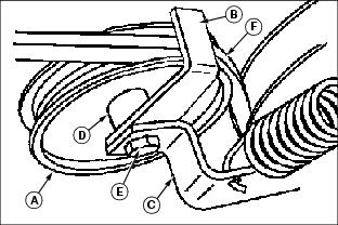 2. Place draft arms (A) back in their original positions. Make sure spacers (E) are installed properly inside draft arms (A).