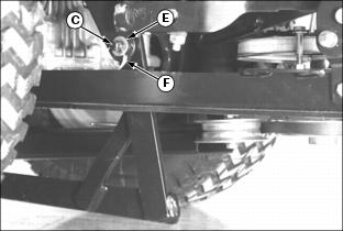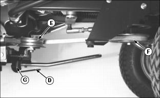 3. Fasten lift rod to lift link with spring locking ring (F), from bag of parts.