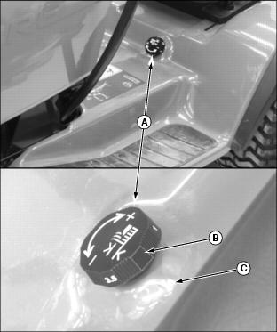 Turn depth control knob (A) to "ZERO" setting (B), raised indicator that is blank should be aligned with fender deck raised indicator (C).
