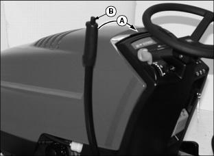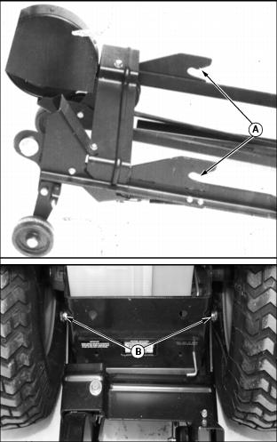 1. Close clip of latch (A) around mounting pin (B) on each side of tractor.
