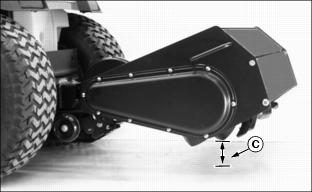 5. Measure distance (C) between lowest tine and ground. Distance should be 75 mm (3-in.). This will allow a maximum 150 mm (6-in.) tilling depth and enough ground clearance for turns on ends of tilling area. If distance is not correct, see Adjusting Tilling Depth in the OPERATING section.