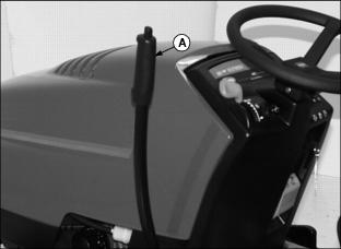 2. "LOCK-OUT" lift lever (A) into "LOWER" position to release spring tension in lift linkage.