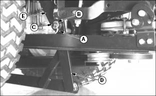 4. Remove lift rod (D) form tractor lift link (E).