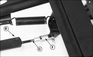 5. Turn lift rod (D) clockwise into clevis (F) to increase tilling depth and counterclockwise out of clevis (F) to decrease tilling depth.