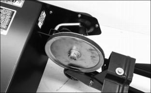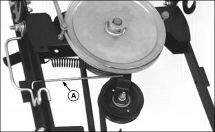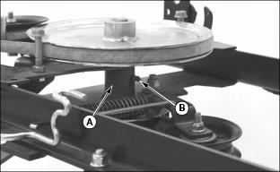 2. Loosen flange lock nut (A) on tensioning idler. Move belt guide (B) away from belt.