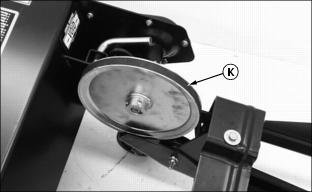 5. Install shield (J) and fasten with two self tapping cap screws (K) until snug-DO NOT over-tighten or you may damage threads in shield holes.