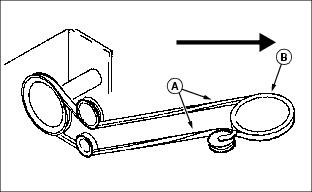 3. Install belt between tensioning idler and belt guide (B) so narrow-edge of belt faces belt guide (B).