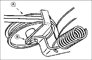 · If rod end is in position (B), against the vertical frame rail (C), the belt is too tight and must be loosened.