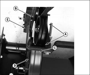 4. Turn bolt (E) clockwise to move tensioning idler (D) up in the slot.