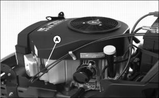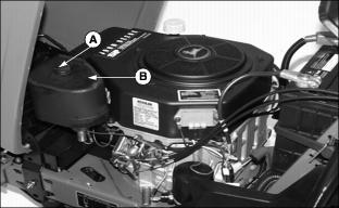 Service EngineAvoid FumesEngine Warranty Maintenance StatementMaintenance, repair, or replacement of the emission control devices and systems on this engine, which are being done at the customers expense, may be performed by any non-road engine repair establishment or individual. Warranty repairs must be performed by an authorized John Deere dealer. Engine Oil (Gas)Use oil viscosity based on the expected air temperature range during the period between oil changes. The following John Deere oils are preferred:Other oils may be used if above John Deere oils are not available, provided they meet the following specification:· API Service Classification SG or higher Checking Engine Oil LevelNOTE: Check oil twice a day if you run engine over 4 hours in a day. Make sure engine is cold when checking engine oil level. 1. Park machine safely. (See Parking Safely in the Safety Section.) 3. Clean area around dipstick to prevent debris from falling into crankcase. 4. Remove dipstick (A). Wipe with clean cloth. · Kohler or Kawasaki Engines: Install dipstick in tube, but DO NOT tighten it. Let dipstick threads rest on top of tube, rotate cap counterclockwise until it "clicks" or drops into the dipstick tube. · Briggs and Stratton Engines: Install and tighten dipstick. 7. Check oil level on dipstick. Oil must be between ADD and FULL marks. 8. If oil level is low, add oil to bring oil level no higher than FULL mark on dipstick. 9. Install and tighten dipstick. Lower hood. Changing Engine Oil and Filter2. Park machine safely on level surface. (See Parking Safely in the Safety Section.) 4. Put drain pan under drain valve. 5. Open drain cap (A) and drain oil into oil drain pan. Allow oil to drain completely. 7. Wipe dirt from around oil filter (C). 8. Place a drain pan or funnel under filter tray. 9. Remove old filter and wipe off filter tray. 10. Put a light coat of fresh, clean oil on the filter gasket. 11. Install replacement oil filter by turning oil filter to the right (clockwise) until the rubber gasket contacts filter base. Tighten filter an additional one-half turn. 15. Start and run engine at idle to check for leaks. Stop engine. Fix any leaks before operating. 16. Check oil level, add oil if necessary. Cleaning Air Intake Screen and Engine Fins