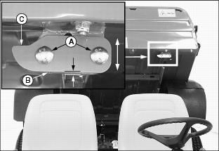 · Tighten flanged front cap screws (B) to 88 N·m Rear Wheel Nuts· Tighten rear drive wheel nuts (C) alternately to 88 N·m (65 lb.-ft.). GreaseUse the following grease based on the air temperature range. Operating outside of the recommended grease air temperature range may cause premature failures. ONLY use a quality grease in this application. DO NOT mix any other greases in this application. DO NOT use any BIO-GREASE in this application. The following John Deere grease is PREFERRED: NON-CLAY HIGH-TEMPERATURE EP GREASE®-JDM J13E4, NLGI Grade 2. Other greases may be used if above preferred John Deere grease is not available, provided they meet the following specification: John Deere Standard JDM J13E4, NLGI Grade 2. Lubricating Front King PinsNOTE: In extreme conditions lubrication should be done more frequently. 1. Park vehicle safely. (See Park Safely in the Safety section.) 2. Raise front of utility vehicle with a safe lifting device. 3. Lubricate one grease fitting (A) on each king pin axle arm with the preferred grease or an equivalent. Adjust Cargo Box LatchNOTE: The vehicle cargo box should not rattle during transport if the latch is properly adjusted. 1. Park vehicle safely. (See Park Safely in the Safety section.) 2. Move the service/drive switch to the SERVICE position. 4. Lift and secure cargo box in the raised position. 5. Loosen both latch bolts (A). NOTE: Preliminarily adjust latch plate 2mm 1mm (0.08 in. 0.04 in.) above the lower edge of the cargo box latch backplate (B). 6. Slide latch (C) up or down as desired to secure cargo box more firmly to the vehicle frame. NOTE: Make sure the cargo box support rod (D) properly rests on the nose of the latch plate. The cargo box will be difficult to latch and unlatch if the position of the latch plate is adjusted too high. 10. Check and adjust latch as necessary. Cleaning and Polishing Plastic Hood and Fenders1. Use water to remove excess dust or dirt. 2. When surface is dry, spray on PLEDGE®1 and leave for 30 to 60 seconds. 3. Using a dry soft clean cloth (i.e. cheesecloth) wipe off to bring up lustre. |