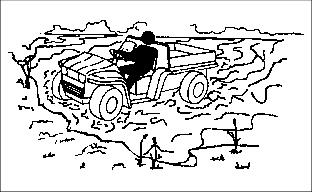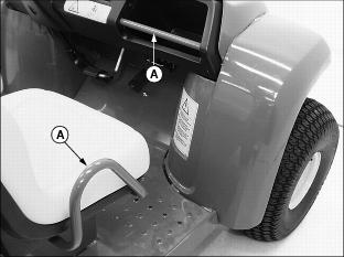5. AFTER CHARGER TURNS OFF, DISCONNECT DC PLUG BY GRASPING PLUG BODY AND PULLING STRAIGHT OUT OF RECEPTACLE. Operate Safelyˇ DO NOT misuse the utility vehicle, it is a utility vehicle NOT a recreation vehicle. ˇ Sit on the center of the seat and keep both feet within the foot platform perimeter. Clean foot platform if dirty, and remove any debris from around foot controls. ˇ Check for debris or refuse in the battery storage compartment, especially around brake linkage which attaches to axle housing on each side of the transaxle. ˇ Always use both hands for steering. ˇ Know location of controls and how and what they operate. ˇ Never operate utility vehicle while standing. ˇ Never operate utility vehicle with the cargo box raised. ˇ Check brake action before beginning vehicle operation. If necessary, have the brakes adjusted or serviced by a trained technician. ˇ To provide adequate braking ability and traction, DO NOT tow any attachment or loaded trailer unless the utility vehicle cargo box is loaded. ˇ Inspect vehicle before operating. Be sure hardware is tight. Repair or replace damaged, badly worn, or missing parts. Be sure guards and shields are in good condition and fastened in place. Make any necessary adjustments before operating. ˇ Keep people and pets out of the work area. Stop the vehicle if anyone enters the area. If an object is hit, stop and inspect the vehicle for damage. Make repairs before operating. Keep the vehicle properly maintained and in good working order. ˇ Keep headlight lenses clean. ˇ DO NOT leave vehicle unattended. ˇ Only operate during daylight or with good artificial light. ˇ Be careful of traffic when operating near or crossing roadways. ˇ This vehicle is NOT intended for use on highways or public roadways. It is to be used for off-road use only. ˇ Avoid sudden starts, stops, or turns. ˇ Always use a level turn-around area. ˇ DO NOT wear radio or music headphones while operating the vehicle. Safe operation requires your full attention. Park Safelyˇ Stop the vehicle on a level surface, not on a slope. ˇ Turn key switch to the OFF "0" position. ˇ Move directional control lever to the NEUTRAL "N" position. Use Hand HoldsHand Holds (A) are provided for passenger balance when driving over rough terrain. Use dash bar and side rails on seats for stability. Check Wheel Mounting Hardwareˇ A serious accident could occur causing serious injury if wheel nuts and bolts are not tight. ˇ Check wheel nut and bolt tightness after first 10 hours of vehicle operation and semi-annually thereafter. Protect Children and Prevent Accidentsˇ Never assume that children will remain where you last saw them. Stay alert to the presence of children. ˇ Never carry children in the cargo box area. DO NOT let children ride in the cargo box of the utility vehicle or any attachment. DO NOT tow children in a cart or trailer. ˇ Use extra care when coming to blind corners, shrubs, trees, or other objects that may block vision. ˇ DO NOT let children or an untrained person operate the vehicle. ˇ Before backing or turning, look behind and around the utility vehicle for children. HELP PREVENT SERIOUS OR FATAL ACCIDENTS: ˇ Be alert at all times, drive forward and in reverse carefully. People, especially children, can move quickly into an area of operation. ˇ Back carefully. Look behind the vehicle, especially for children, before backing up. ˇ DO NOT operate vehicle if under the influence of alcohol or other drugs. ˇ Misuse and recreational riding can lead to accidents, severe bodily injury or death. Avoid TippingAccidents resulting in serious injury or death can occur from tipping the utility vehicle. Observe the following practices to help prevent accidents: ˇ DO NOT misuse this utility vehicle. This utility vehicle is not designed for recreational riding. ˇ Never allow riders in the cargo box or other areas where seats are not provided. ˇ Drive very slowly when turning. Sharp turns could cause the utility vehicle to tip over. ˇ Reduce speed and exercise extreme caution on slopes or on rough ground. ˇ DO NOT overload vehicle and avoid shifting loads. Reduce load when operating over rough or hilly terrain. ˇ DO NOT stop or start suddenly when going uphill or downhill. Be especially cautious when changing direction on slopes. ˇ Stay alert for holes, rocks, and other hidden hazards in the terrain. ˇ Keep front wheels straight at crest of hill or going over bumps. ˇ When descending a hill, remove foot from accelerator and apply brakes to reduce speed and maintain control. ˇ DO NOT make changes or modifications to this utility vehicle. ˇ Use of a helmet and/or protective gear is recommended for certain operating conditions. Operator Training RequiredStudy Operating section of this manual before operating the vehicle. ˇ Operate vehicle in an open, unobstructed area under the direction of an experienced operator. ˇ Learn the use of all controls. ˇ Operator experience is required to learn the moving, stopping, turning and other operating characteristics of the vehicle. ˇ Young drivers may not have the strength or experience to control the utility vehicle. This increases the chances of rolling the vehicle over resulting in severe bodily injury or death. ˇ The utility vehicle should NOT be operated by anyone under the age of 16 years. Keep Riders Off Vehicleˇ Seating is provided for operator and one passenger. No riders are allowed in cargo box or anywhere else on vehicle. ˇ Riders on vehicle are subject to injury such as being struck by foreign objects or being thrown off of the vehicle and severely injured or killed. ˇ Riders affect the operators ability to control the vehicle as well as its center of gravity. Also, riders could obstruct the operator's view resulting in the vehicle being operated in an unsafe manner. Wear Appropriate Clothingˇ Wear close fitting clothing and safety equipment appropriate for the job. ˇ Loud noise can cause impairment or l
