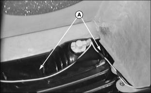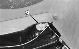 1. Disconnect and remove battery. 2. Wash battery with solution of four tablespoons of baking soda to one gallon of water. Be careful not to get the soda solution into the cells. 3. Rinse the battery with plain water and dry. 4. Clean terminals and battery cable ends with wire brush until bright. 5. Apply petroleum jelly or silicone spray to terminal to prevent corrosion. Using Booster Battery1. Connect positive (+) booster cable to booster battery (A) positive (+) post (B). 2. Connect the other end of positive (+) booster cable to vehicle battery (C) positive (+) post (D). 3. Connect negative (-) booster cable to booster battery negative (-) post (E). 4. Connect the other end (F) of negative (-) booster cable to a metal part of the machine frame away from battery. 5. Start the engine of the disabled machine and run machine for several minutes. 6. Carefully disconnect the booster cables in the exact reverse order: negative cable first and then the positive cable. Replacing Headlight Bulb1. Turn bulb socket (A) 1/4 turn counterclockwise to remove. 2. Replace defective bulb with a new bulb. 3. Insert bulb socket into housing, push in and turn 1/4 turn clockwise to install. Cleaning Headlight Lens1. Squeeze plastic clips (A) together to remove each lens. 2. Clean lens with a soft cloth and a household window cleaner. 3. Install lens by pushing lightly on front surface of lens until clips snap in place. |