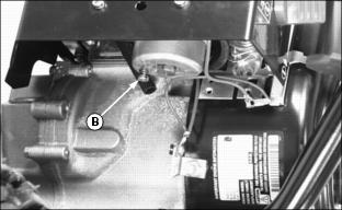 StorageStoring SafetyPreparing Snowblower for Storage1. Remove any snow, ice or slush from exterior of engine. 2. Change engine oil and filter. Do when engine is warm. 3. Clean debris from engine cylinder fins. 4. Repair any worn or damaged parts. Replace parts if necessary. Tighten loose hardware. 5. Paint scratched or chipped metal surfaces to prevent rust. 6. Apply wax to metal and plastic surfaces of machine. 7. Apply light coat of engine oil to pivot and wear points to prevent rust. 8. Make sure tires are properly inflated. Preparing Engine For StorageNOTE: Properly preparing your snowblower engine for storage will make it easier to start the following season. Engine storage procedure should be used if snowblower is stored for longer than 60 days. 1. Park snowblower in a well-ventilated area. 2. Turn fuel shut-off valve (A) to OFF. 4. Drain any excess fuel from carburetor. ˇ Hold paper towel under carburetor to catch any remaining fuel. Dispose of paper towel in appropriate manner. ˇ Turn out carburetor drain screw (B) until fuel stops draining from carburetor. ˇ Tighten carburetor drain screw.