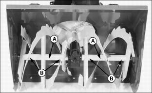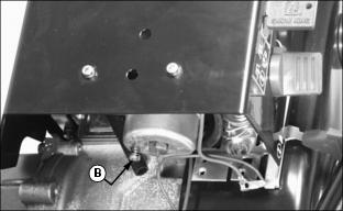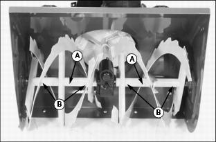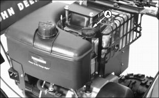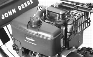ServiceEngine Warranty Maintenance StatementMaintenance, repair, or replacement of the emission control devices and systems on this engine, which are being done at the customers expense, may be performed by any nonroad engine repair establishment or individual. Warranty repairs must be performed by an authorized John Deere dealer. Avoid FumesGreaseThe following greases are preferred:· John Deere Multi-Purpose SD Polyurea Grease · John Deere Multi-Purpose HD Lithium Complex Grease · John Deere Moly High Temperature EP Grease If not using any of the preferred greases, be sure to use a general all-purpose grease with an NLGI grade No.2 rating. Wet or high speed conditions may require use of a special-use grease. Contact your Servicing dealer for information. Engine OilUse oil viscosity based on the expected air temperature range during the period between oil changes. The following John Deere oils are preferred:Other oils may be used if above John Deere oils are not available, provided they meet the following specification:· API Service Classification SG or higher Gear OilUse oil viscosity based on the expected air temperature range during the period between oil changes. The following John Deere gear case oil is PREFERRED: The following John Deere gear case oil is also recommended if above preferred oil is not available: Other gear case oils may be used if above recommended John Deere gear case oils are not available, provided they meet the following specification: · API Service Classification GL-5. Checking Engine Oil Level1. Park snowblower on a level surface. 2. Clean area around dipstick. 3. Remove dipstick (A). Wipe it off with clean, lint free towel. 4. Install and tighten dipstick. Remove dipstick and locate oil level. 5. Add oil through dipstick tube to bring level to the FULL mark (B) on dipstick. 6. Install and tighten dipstick. Changing Engine OilNOTE: If you do not operate snowblower 25 hours during a season, change oil at end of season. 1. Run engine a few minutes to warm oil. Oil will flow more freely and carry away more contamination when warm. 2. Clean area around oil drain plug (A). 3. Position unit so engine oil drain plug is lowest point on engine. 4. Remove dipstick and oil drain plug to drain engine oil. 5. When all oil has drained, install oil drain plug and tighten. 6. Add oil through dipstick tube to bring level to the FULL mark (B) on dipstick. · Approximate crankcase capacity for Models 924DE, 1128DE and 1128DDE: 769 mL (26 oz) · Approximate crankcase capacity for Models 1332DDE: 828 mL (28 oz) 7. Install and tighten dipstick. Cleaning And Gapping Spark Plug1. Clean area around spark plug. 2. Disconnect spark plug wire (A). · Pitted of damaged electrodes. 5. Check plug gap (B) with a feeler gauge: · Gap must be 0.76 mm (0.030 in.). 6. Install spark plug and tighten to 25 - 32 N·m (220 - 280 lb-in). Cleaning Cylinder Fins· Every 100 operating hours or yearly (more often if conditions require) remove cooling shrouds and clean cooling fins. · Also clean external surfaces of your engine of dust, dirt, and oil deposits which can contribute to improper cooling. Replacing Shear BoltsNOTE: Two extra shear bolts were included with your snowblower. 2. Remove broken shear bolt (A), if necessary. 3. Lubricate auger shaft at four points (B). Turn auger shaft several times to distribute grease. 4. Line up holes in auger with hole in auger shaft. 5. Install new shear bolt and lock nut. Adjusting CarburetorNOTE: The carburetor is calibrated by the engine manufacturer and should not require any adjustments. If engine is operated at altitudes above 1829 m (6,000 ft.), see your John Deere dealer. Possible engine surging will occur at high rpm when the transmission is in neutral ("N") and auger drive is disengaged. This is a normal condition due to the emission control system. If engine is hard to start or runs rough, check the Troubleshooting section of this manual. After performing the checks in the troubleshooting section and your engine is still not performing correctly, contact your John Deere dealer. Draining Carburetor1. Turn fuel shut off valve (A) to the CLOSED (OFF) position. 2. Place a small container under the carburetor. 3. Press drain plug (B) in until all fuel is removed from bowl. Lubricating Auger GearboxNOTE: Two different types of gear boxes are used. Both are serviced the same way. 1. Clean area around fill plug. 2. Park unit on level surface. 4. Fluid level should be at oil fill plug. Lubricating Auger Shaft2. Turn auger on shaft while applying grease to grease fittings (B). Lubricating Internal Drive1. Park snowblower on a hard, smooth surface. 2. Stop engine, remove key, wait for all moving parts to stop. 3. Remove wire from spark plug to prevent accidental starting. 5. Tip machine forward onto housing (A). 6. Remove two bolts (B) and loosen two bolts (C) to remove access panel (D).