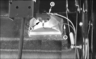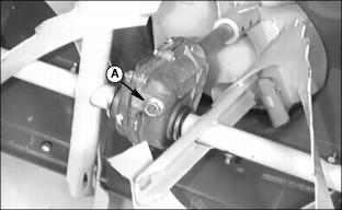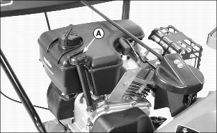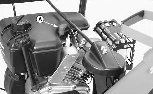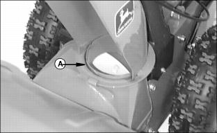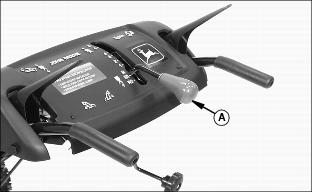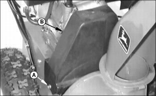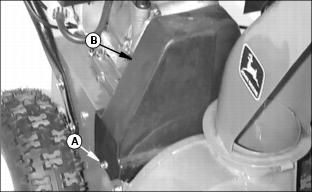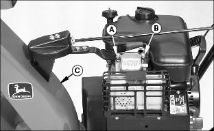 ServiceEngine Warranty Maintenance StatementMaintenance, repair, or replacement of the emission control devices and systems on this engine, which are being done at the customers expense, may be performed by any nonroad engine repair establishment or individual. Warranty repairs must be performed by an authorized John Deere dealer. Avoid FumesGreaseThe following greases are preferred:· John Deere Multi-Purpose SD Polyurea Grease · John Deere Multi-Purpose HD Lithium Complex Grease · John Deere Moly High Temperature EP Grease If not using any of the preferred greases, be sure to use a general all-purpose grease with an NLGI grade No.2 rating. Wet or high speed conditions may require use of a special-use grease. Contact your Servicing dealer for information. Engine OilUse oil viscosity based on the expected air temperature range during the period between oil changes. The following John Deere oils are preferred:Other oils may be used if above John Deere oils are not available, provided they meet the following specification:· API Service Classification SG or higher Gear OilUse oil viscosity based on the expected air temperature range during the period between oil changes. The following John Deere gear case oil is PREFERRED: The following John Deere gear case oil is also recommended if above preferred oil is not available: Other gear case oils may be used if above recommended John Deere gear case oils are not available, provided they meet the following specification: · API Service Classification GL-5. Checking Engine Oil Level1. Park snowblower on a level surface. 2. Clean area around dipstick. 3. Remove dipstick (A). Wipe it off with clean, lint free towel. 4. Install and tighten dipstick. Remove dipstick and locate oil level. 5. Add oil to bring level to the FULL mark on dipstick. · Add oil through dipstick tube. 6. Install and tighten dipstick. Changing Engine OilNOTE: Change oil after first two operating hours. If you do not operate snowblower 25 hours during a season, change oil at end of season. 1. Run engine a few minutes to warm oil. Oil will flow more freely and carry away more contamination when warm. 2. Clean area around oil drain plug (A). 3. Position unit so engine oil drain plug is lowest point on engine. 4. Remove oil drain plug (A) and dipstick (B) to drain engine oil. 5. Install oil drain plug and tighten. 6. Add oil to bring level to the FULL mark on dipstick. · Add oil through dipstick tube. Approximate crankcase capacity:· Install and tighten dipstick. Cleaning And Gapping Spark PlugClean and gap spark plug at the beginning of season or every 25 operating hours. 1. Clean area around spark plug. 2. Disconnect spark plug wire (A). 3. Remove and inspect spark plug: · Clean plug and check for damage, replace if necessary. · If plug is in good condition, check gap. 4. Check and adjust spark plug gap (B): 5. Install spark plug and tighten to 20 N·m (15 lb-ft.). Cleaning Cylinder Fins· Every 100 operating hours or yearly (more often if conditions require) remove cooling shrouds and clean cooling fins. · Also clean external surfaces of your engine of dust, dirt, and oil deposits which can contribute to improper cooling. Replacing Shear BoltsNOTE: Two extra shear bolts were included with your snowblower. 2. Inspect both shear bolts (A). If necessary, remove broken shear bolt(s). 3. Lubricate auger shaft at four points (B). Turn auger shaft several times to distribute grease. 4. Line up holes in auger with hole in auger shaft. 5. Install new shear bolt and lock nut. Checking Tire PressureCheck tires for wear or damage, replace as required. Check tire pressure (A) with an accurate gauge. Tire pressure should be: Adjusting CarburetorNOTE: The carburetor is calibrated by the engine manufacturer and should not require any adjustments. If engine is operated at altitudes above 1829 m (6,000 ft.), some carburetors may require a special high altitude main jet. See your John Deere dealer. Possible engine surging will occur at high rpm when the transmission is in neutral ("N") and the PTO switch is in the OFF position. This is a normal condition due to the emission control system. If engine is hard to start or runs rough, check the Troubleshooting section of this manual. After performing the checks in the troubleshooting section and your engine is still not performing correctly, contact your John Deere dealer. Drain CarburetorTo remove fuel from the carburetor bowl: · Turn fuel shut off valve (A) to the closed (OFF) position. · Place a small container under the carburetor. · Press drain plug (B) in until all fuel is removed from bowl. Lubricating Auger GearboxCheck oil level at the beginning of season or every 25 operating hours. 1. Clean area around fill plug. 2. Park unit on level surface. 4. Fluid level should be at oil fill plug. Lubricating Auger ShaftAuger shaft should be lubricated at the beginning of season or every 25 operating hours. 2. Turn auger on shaft while applying grease to grease fittings (B). Lubricating Internal DriveInternal drive should be lubricated at the beginning of season or every 25 operating hours. 1. Park snowblower on a hard, smooth surface. 2. Stop engine, remove key, wait for all moving parts to stop. 3. Remove wire from spark plug to prevent accidental starting. 4. Tip machine forward onto housing (A). 5. Remove two bolts (B) and loosen two bolts (C) to remove access panel (D).