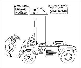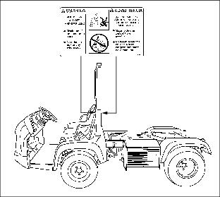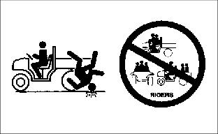 SafetyUnderstanding The Machine Safety LabelsThe machine safety labels shown in this section are placed in important areas on your machine to draw attention to potential safety hazards. On your machine safety labels, the words DANGER, WARNING, and CAUTION are used with this safety-alert symbol,. DANGER identifies the most serious hazards. The operator's manual also explains any potential safety hazards whenever necessary in special safety messages that are identified with the word, CAUTION, and the safety-alert symbol,. WARNING: RIDERS CAN FALL OFF AND BE KILLED· Maximum of one person to a seat · No riders in box or anywhere else CAUTIONWARNING-HOT SURFACEWARNING: USE SEAT BELTWARNING