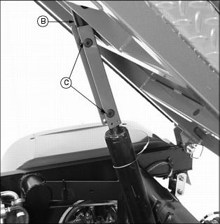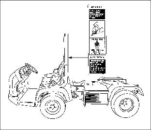 Emissions Control System Certification Label (NonRoad Diesel)The emissions warranty described in the Warranty section applies only to those engines marketed by John Deere that have been certified by the United States Environmental Protection Agency (EPA) and/or California Air Resources Board (CARB); and used in the United States in non-road mobile (self-propelled or portable/transportable1) equipment. The presence of an emissions label like the one shown signifies that the engine has been certified with the EPA and/or CARB. The EPA and CARB warranties only apply to new engines having the certification label affixed to the engine and sold as stated above in the geographic areas governed by the regulating agencies. NOTE: The hp/kW rating on the engine emissions certification label specifies the gross engine hp/kW, which is flywheel power without fan. In most applications this will not be the same rating as the advertised vehicle hp/kW rating. Emission Control System Certification Label (Small Off-Road Gas Engines)Emission Compliance Period (Small Off-Road Gas Engines)If your engine has the emission compliance category listed on the emission control system certification or air index label, this indicates the number of operating hours for which the engine has been certified to meet EPA and/or CARB emission requirements. The following table provides the engine compliance period in hours associated with the category found on the certification label. Operator Training RequiredStudy Operating section of this manual before operating the vehicle. · The owner of the machine is responsible for training the users of the machine. · The owner/user can prevent accidents with proper use of the machine. The owner/user is responsible for accidents or injuries occurring to themselves, other people or property. · Do not allow operation of the machine by untrained persons. · Read the operator manual and study the safety and operation sections before operating the machine. · If the operator of the machine cannot read or understand this manual, the machine owner is responsible to explain this material to the operator. This publication is available in other languages. · Operate the machine in an open, unobstructed area under the direction of an experienced operator. · Learn the use of all controls. · Operator practice is required to learn the moving, stopping, turning and other operating characteristics of the machine. Operate Safely· Inspect machine before you operate. Be sure hardware is tight. Repair or replace damaged, badly worn, or missing parts. Be sure guards and shields are in good condition and fastened in place. Make any necessary adjustments before you operate. · Check before each use that operator presence controls are functioning correctly. Test safety systems. Do not operate unless they are functioning correctly. · View the videotape provided with the vehicle for safe operating practices. · Do not misuse the ProGator® Utility Vehicle, it is a utility vehicle not a recreation vehicle. · Sit on the center of the seat and keep both feet within the foot platform perimeter. Clean foot platform if dirty, and remove any debris from around foot controls. · Check for debris or refuse in the battery storage compartment, especially around brake linkage which attaches to axle housing on each side of the transaxle. · Always use both hands for steering. · Do not change the engine governor setting or overspeed the engine. · Know location of controls and how and what they operate. · Never operate utility vehicle while standing. · Never operate utility vehicle with the cargo box or any attachment raised. · Check brake action before beginning vehicle operation. Adjust or service the brakes as necessary. · Stop machine if anyone enters the area. · If you hit an object, stop and inspect the machine. Make repairs before you operate. Keep machine and attachments properly maintained and in good working order. · To provide adequate braking ability and traction, do not tow any attachment or loaded trailer unless the utility vehicle cargo box is loaded. · Inspect vehicle before operating. Be sure hardware is tight. Repair or replace damaged, badly worn, or missing parts. Be sure guards and shields are in good condition and fastened in place. Make any necessary adjustments before operating. · Keep people and pets out of the work area. Stop the vehicle if anyone enters the area. If an object is hit, stop and inspect the vehicle for damage. Make repairs before operating. Keep the vehicle properly maintained and in good working order. · Keep headlight and taillight lenses clean. · Do not leave vehicle unattended when it is running. · Only operate during daylight or with good artificial light. · Be careful of traffic when operating near or crossing roadways. · This vehicle is not intended for use on highways or public roadways. It is to be used for off-road use only. · Avoid sudden starts, stops, or turns. · Always use a level turn-around area. · Do not wear radio or music headphones while operating the vehicle. Safe operation requires your full attention. · Be careful of traffic when operating near or crossing roadways. Make sure to stop blades before crossing roads or sidewalks. Use care when approaching blind corners, shrubs, trees, or other objects that may obscure vision. Be careful of traffic when operating near roadways. Parking Safely1. Stop machine on a level surface, not on a slope. 3. Lower attachments to the ground. 7. Wait for engine and all moving parts to stop before you leave the operator's station. Use Hand HoldsHand holds (A) are provided for operator and passenger balance when driving over rough terrain. Use dash bar and side rails on seats for stability. Use Seat Belt ProperlyUse a seat belt when you operate with a Roll-Over Protective Structure (ROPS) or cab to minimize the chance of injury from an accident, such as an overturn. Protect Children and Prevent Accidents· Nev