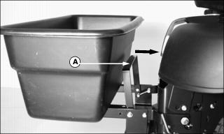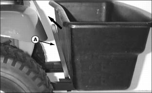 Using Tractor Trunk Latch Lever (SST Lawn Tractors)1. Park tractor safely. (See Parking Safely in the SAFETY section.) 2. Pull latch lever (A) toward tractor to release tractor trunk and dump load. 3. When tractor trunk is emptied, raise trunk and lock into position on support frame. Using Tractor Trunk Latch Lever (LT, LX, STX, and GT Series Tractors)1. Park tractor safely. (See Parking Safely in the SAFETY section.) 2. Push latch lever (A) inward toward right of tractor to release tractor trunk and dump load. 3. When tractor trunk is emptied, raise trunk and lock into position on support frame. |